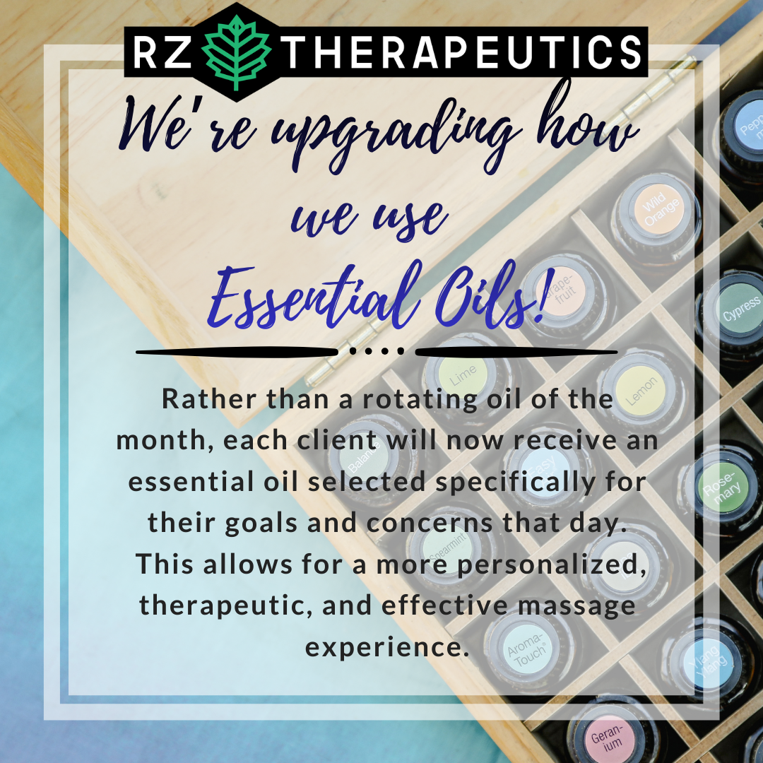 Every massage includes an oil of the month or combination of oils designed to soothe the body and mind.